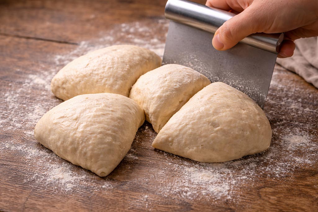 - Formiranje komadaSvaki deo testa dalje podelite na komade od oko 200 g. Lagano ih oblikujte u kratke valjke ili blago zaobljene forme, bez preteranog pritiskanja.Ostavite ih da odmore 15 minuta.