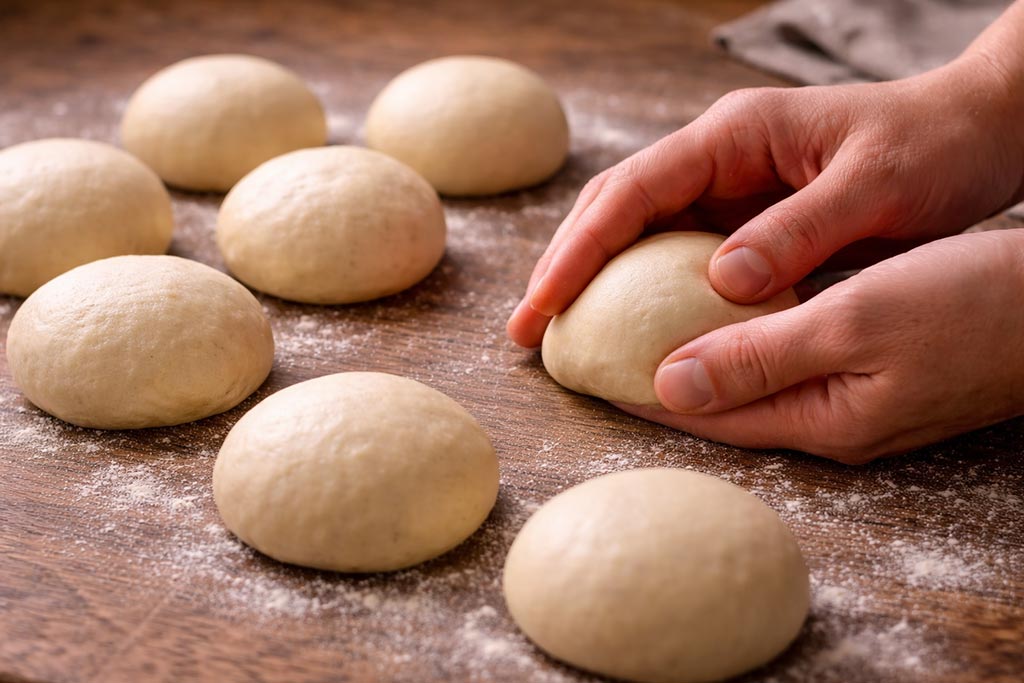 - Finalna fermentacijaOblikovane komade ostavite da narastu oko 45 minuta, pokrivene, na toplom mestu.Testo treba vidno da poveća volumen, ali da i dalje zadrži strukturu.
