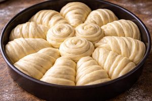 Zames testaU veću posudu sipajte brašno i napravite udubljenje u sredini. Dodajte nadošli kvasac, so, ulje i ostatak mleka.Zamesite glatko, srednje mekano testo. Po potrebi dodajte još malo mleka. Testo treba da bude elastično, ali da se ne lepi za ruke i posudu.Mesite najmanje 8–10 minuta, dok testo ne postane potpuno ujednačeno i podatno.